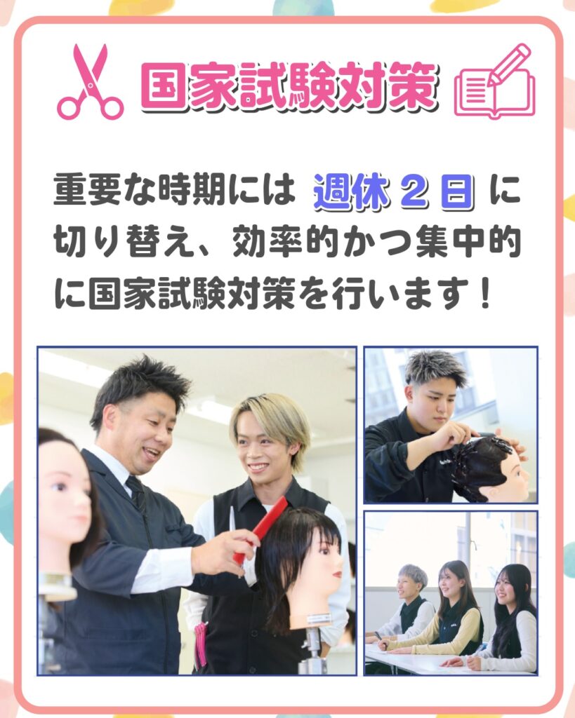 国家試験対策の重要な時期には週休2日制に切り替え、効率的かつ集中的に国家試験対策を行います✂️