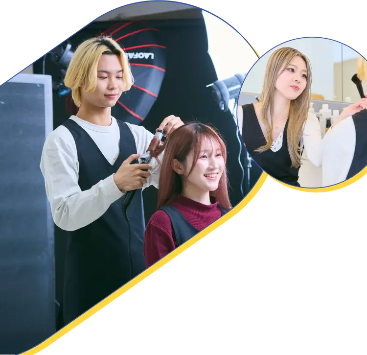撮影やステージを想定した実践的な授業を通して、ヘアメイクの可能性を広げます。